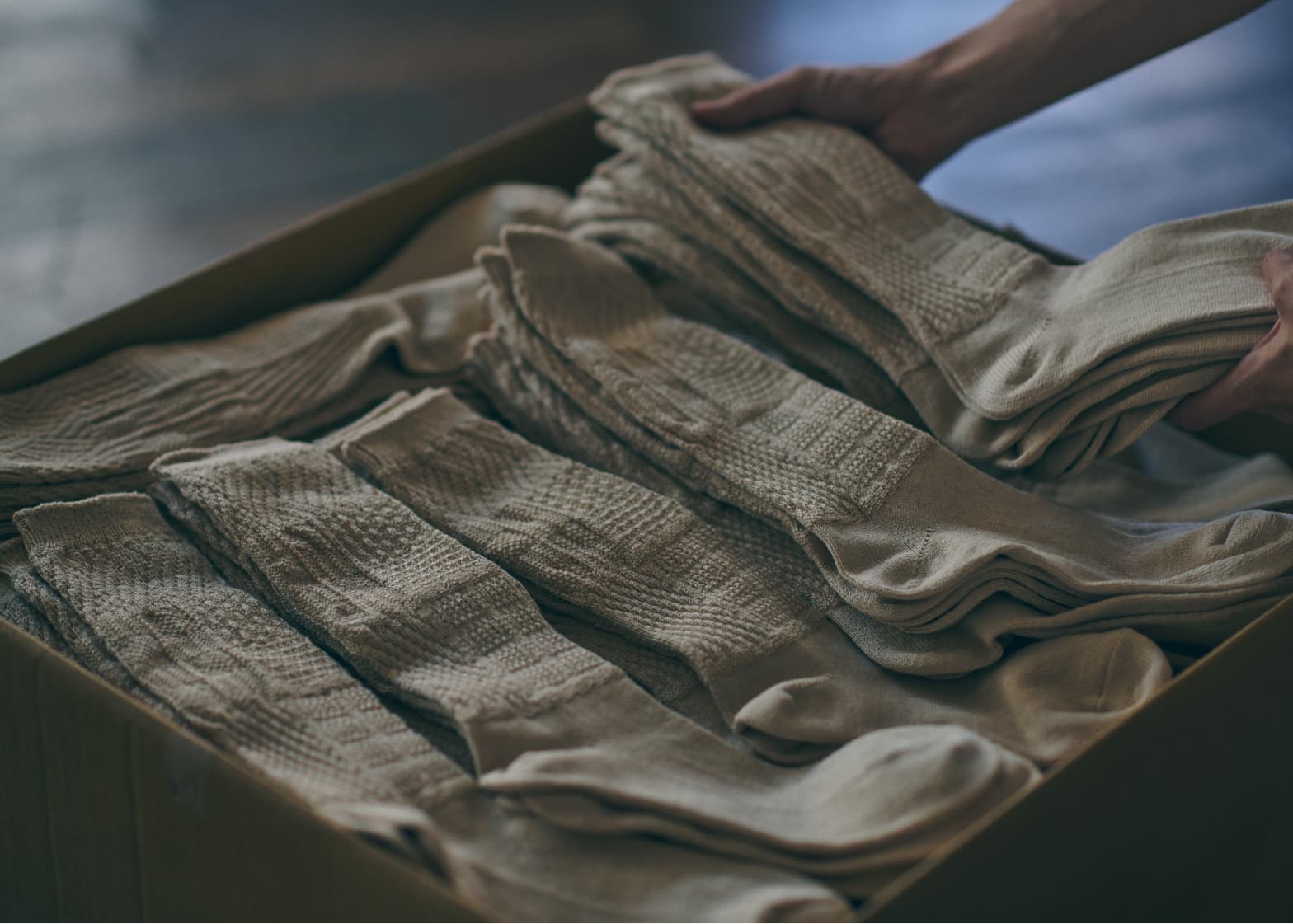“yahae” is our brand born in 2020, named after our founder “Yahei”, who originally started the company as a cotton business. While learning from the history we’ve built, we also value looking toward the future to sustainably keep creating. The socks we discussed and designed turned out to be ones that cherish the present time and make us want to wear them for as long as we can.