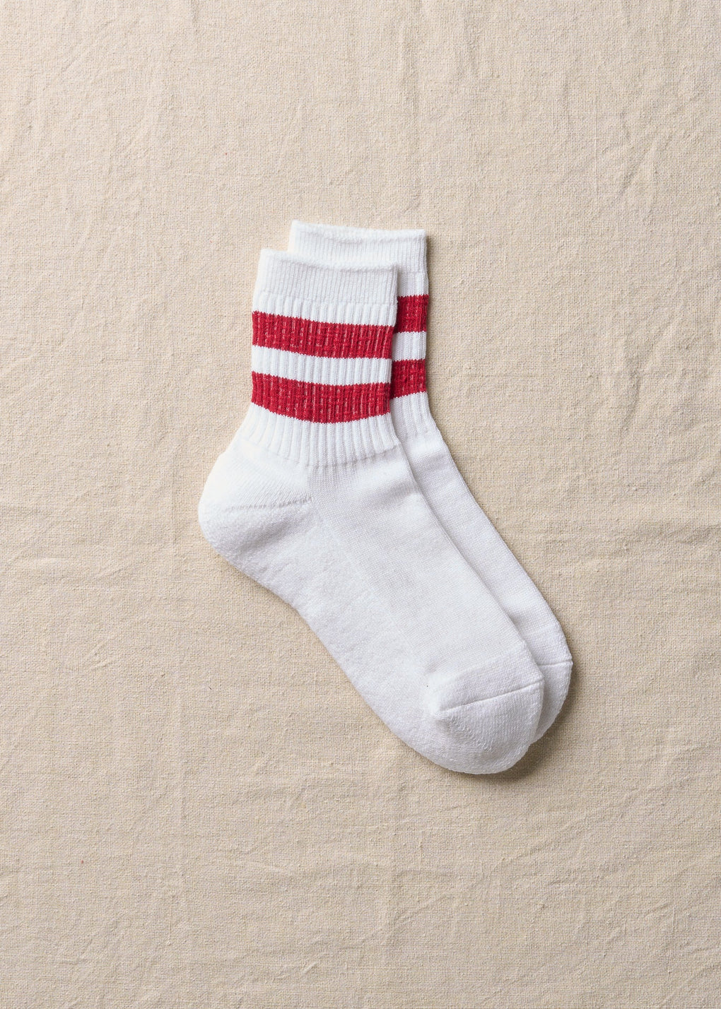 リネンとオーガニックコットンを撚糸した糸で編み立てた足底パイルソックス。コットンの柔らかさとリネンの清涼感を共に感じられるように、撚糸した糸で編み立てています。