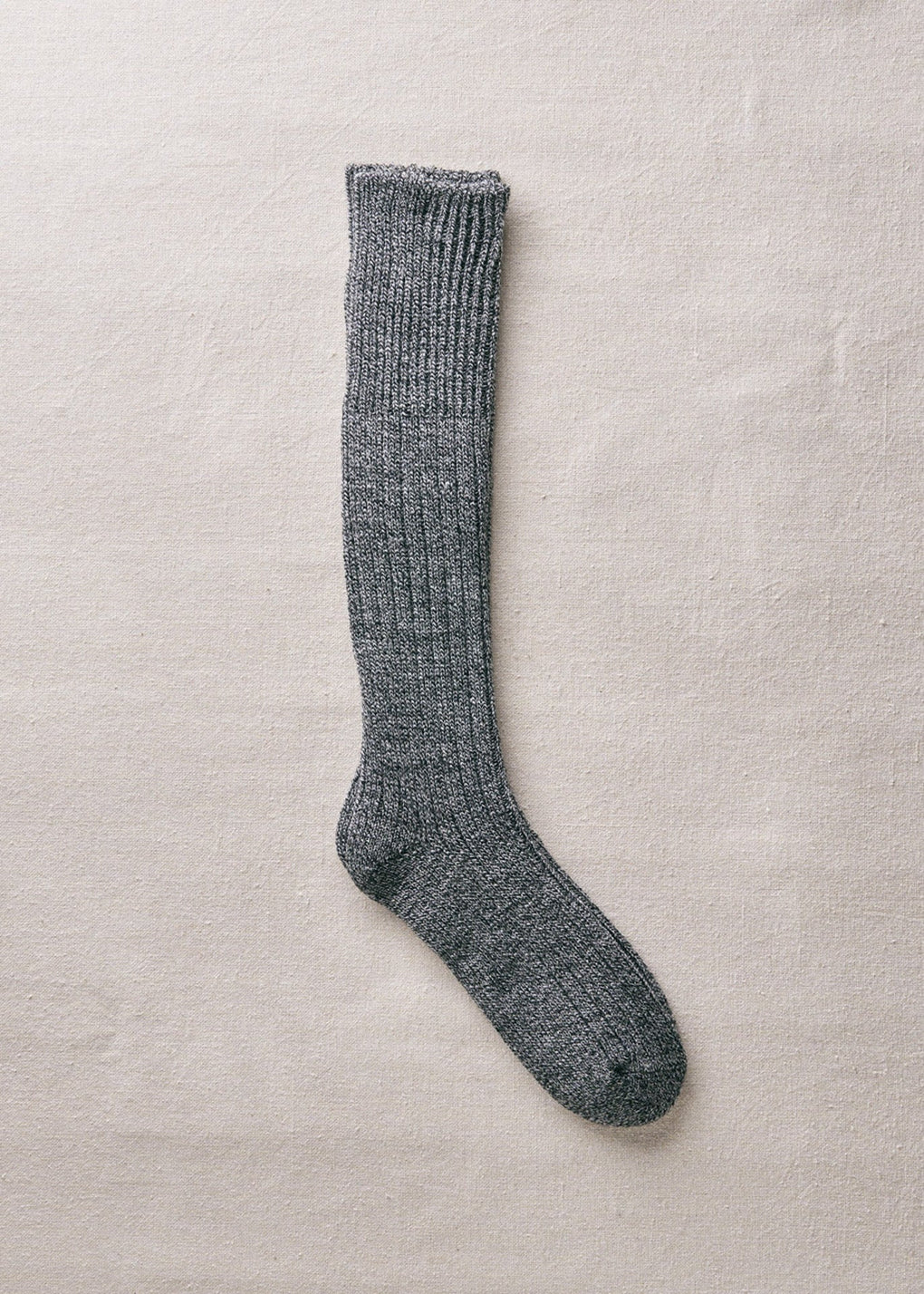 滑らかで肌触りの良い梳毛ウールをざっくりと編み立てたローゲージのハイソックス。旧式の編み機で時間をかけて丁寧に編み立てることで、しっかりとした厚みと温かさを実現しました。リラックス感のある風合いと履き心地が魅力の一足です。