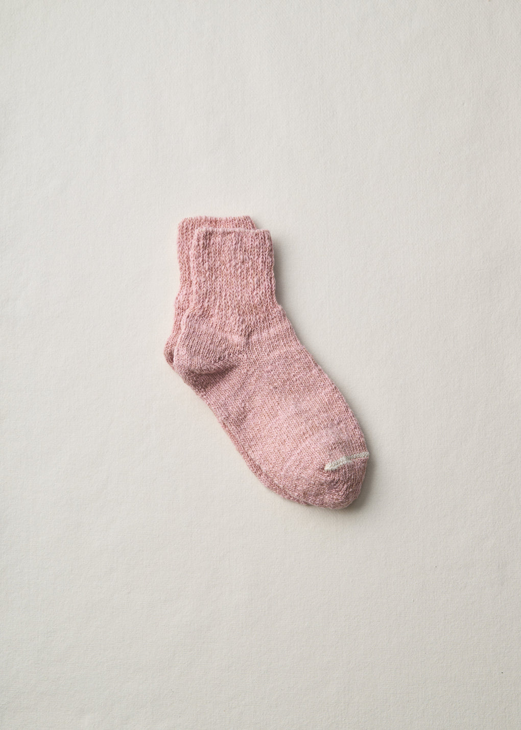 日本独自の紡績方法「ガラ紡」の糸をオリジナルカラー染めした特別な一足です。締め付けの少ない編み地で優しく編み立てているので、ルームソックスとしておうち時間にはくと心地よく毎日に寄り添ってくれます。とても豊かな風合いで、タオルのように優しく足を包み込んでくれます。