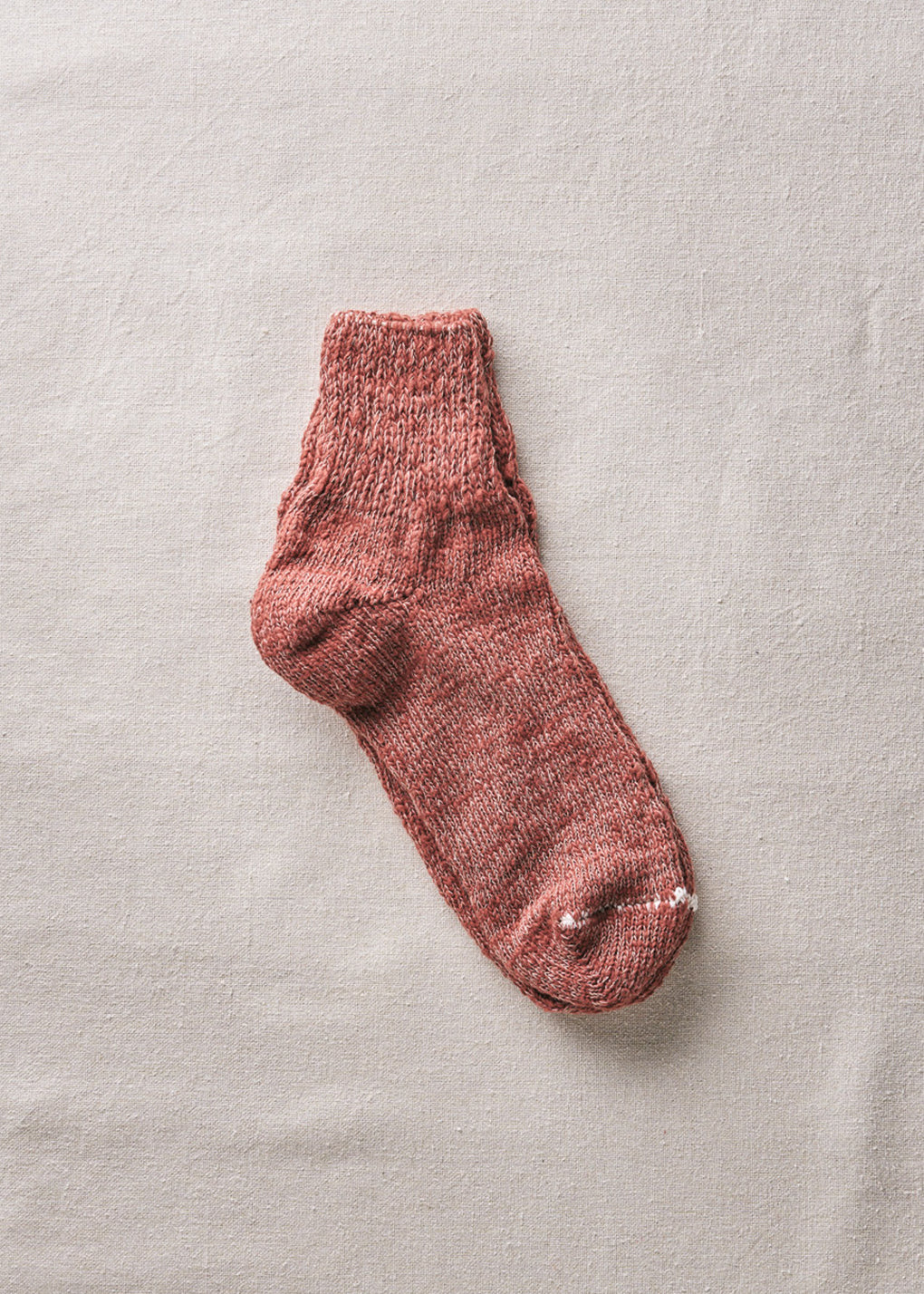 日本独自の紡績方法「ガラ紡」の糸をオリジナルカラー染めした特別な一足です。締め付けの少ない編み地で優しく編み立てているので、ルームソックスとしておうち時間に履くと心地よく毎日に寄り添ってくれます。とても豊かな風合いで、タオルのように優しく足を包み込んでくれます。