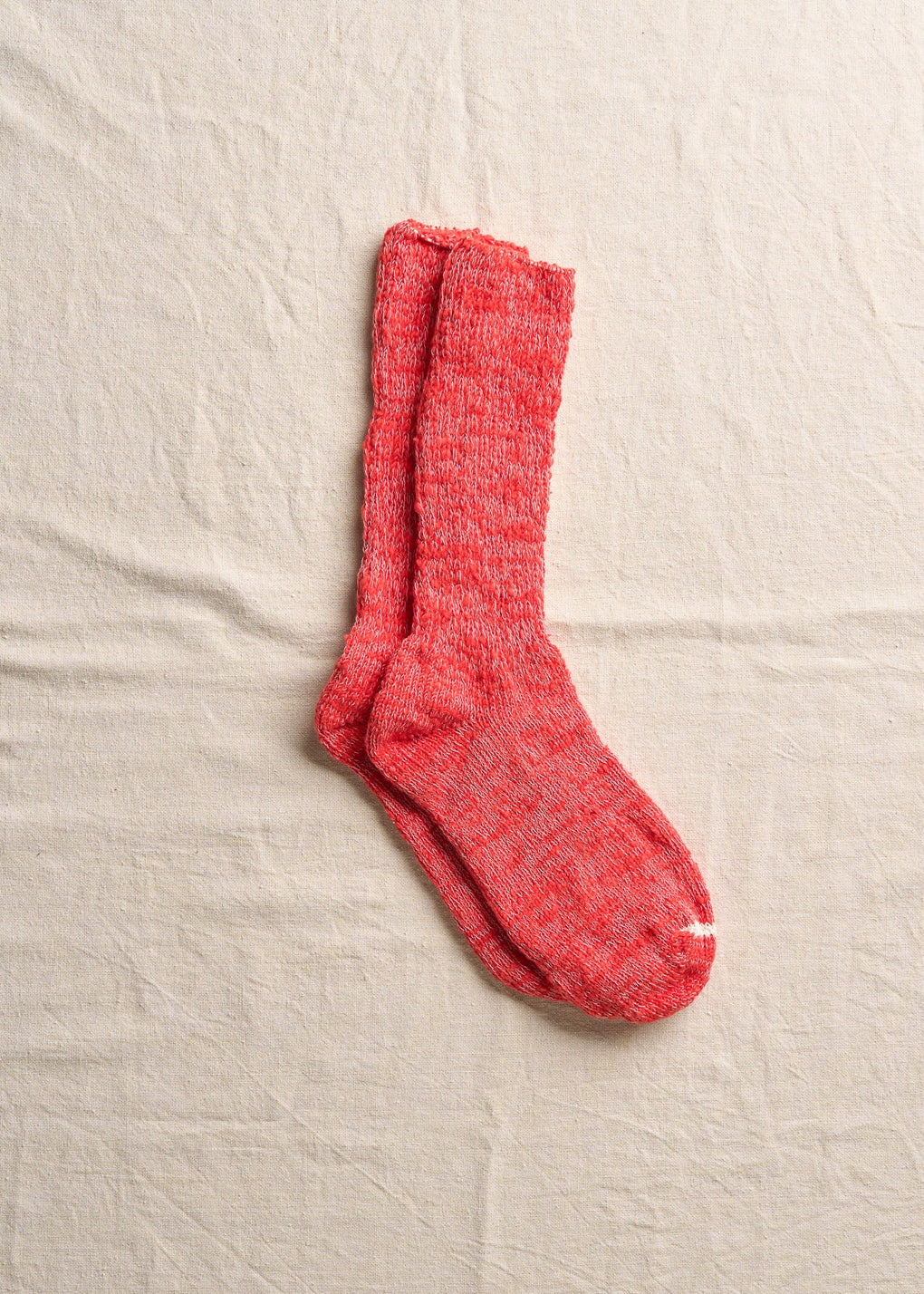 日本独自の紡績方法「ガラ紡」の糸をオリジナルカラー染めした特別な一足です。締め付けの少ない編み地で優しく編み立てているので、ルームソックスとしておうち時間に履くと心地よく毎日に寄り添ってくれます。とても豊かな風合いで、タオルのように優しく足を包み込んでくれます。