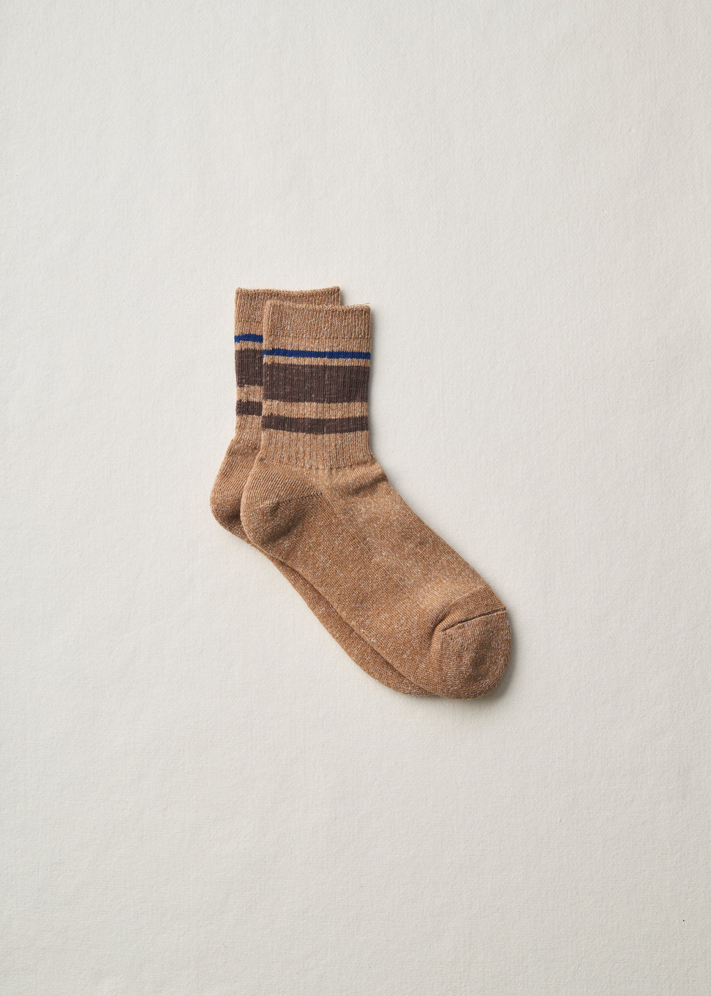 リネンとオーガニックコットンを撚糸した糸で編み立てた足底パイルソックス。コットンの柔らかさとリネンの清涼感を共に感じられるように、撚糸した糸で編み立てています。