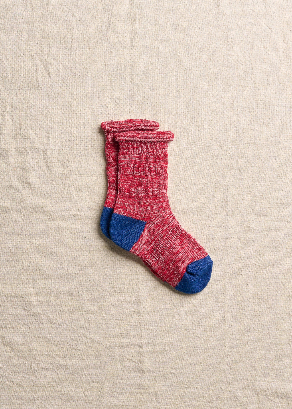 オーガニックコットンでざっくりと編み立てたキッズサイズのローゲージソックス。厚手でコットンの柔らかな風合いが楽しめます。部分的に入ったサポートのゴム入れでキッズにも優しくフィットします。