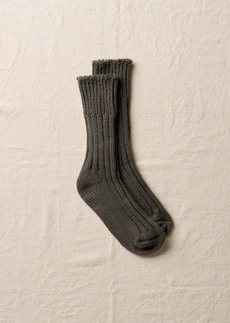 イギリス ベントレー社の古いヴィンテージマシーンで編み立てた、昔ながらの風合いのあるローゲージソックス。たくさんの糸を使いゆっくりと編み上げた、手編みのような優しい履き心地です。コットンの種類でそれぞれ異なる履き心地を楽しんでいただけます。