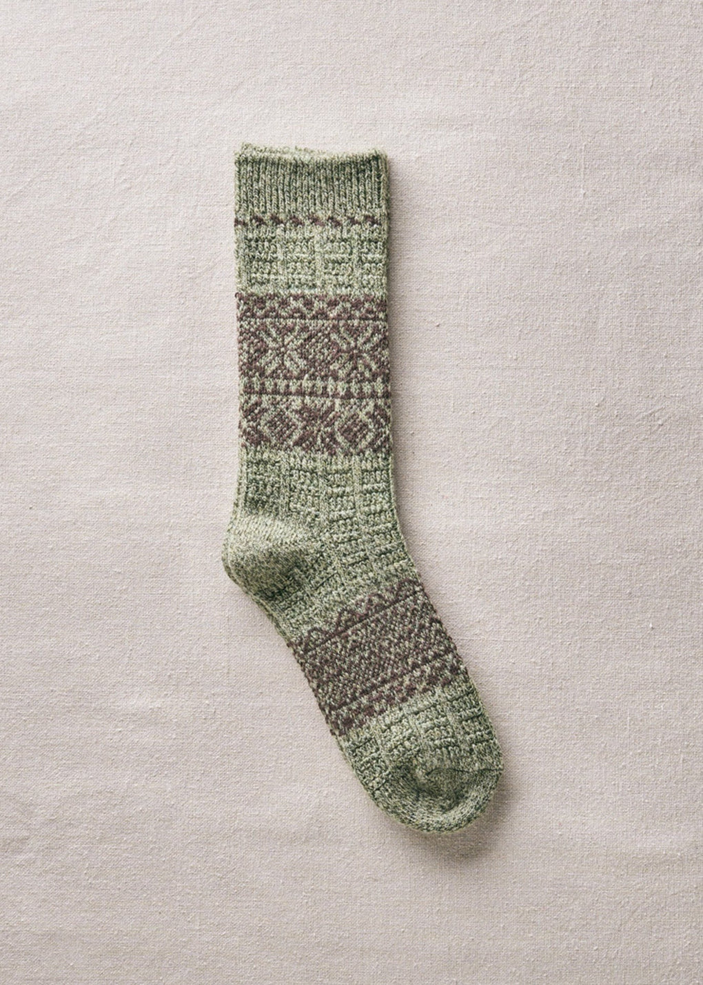Wool Organic Cotton Snow Pattern Socks | 4-4028 | Green