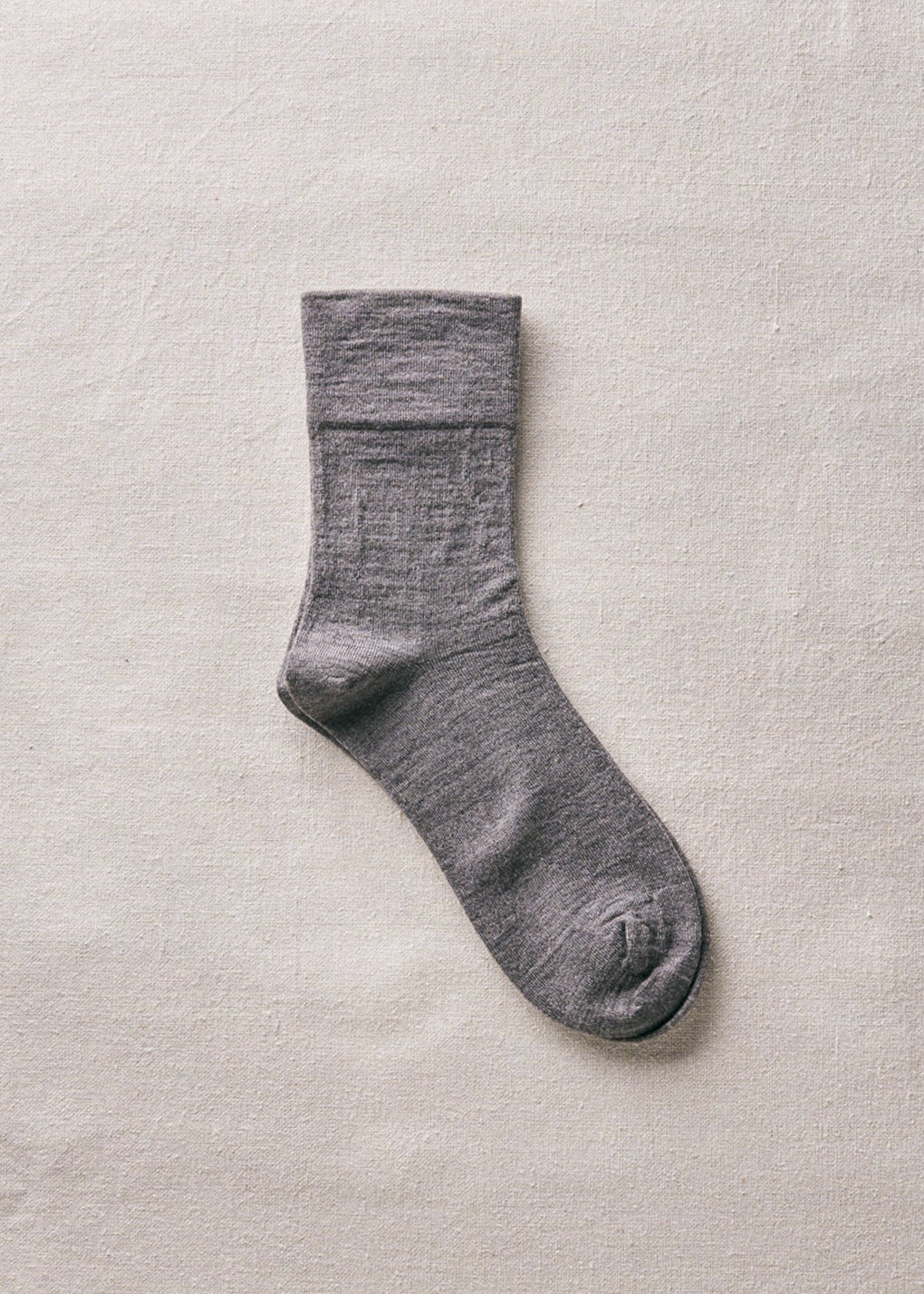 滑らかで肌触りの良い梳毛ウールを使用し、薄手に編み立てたゴムなしソックス。締め付け感がなく、足に優しくフィットします。爪先はリンキング仕様で、縫い目がごろつかず快適な履き心地です。軽やかで柔らかな素材感は、肌に触れるたびに心地よさを実感していただけます。