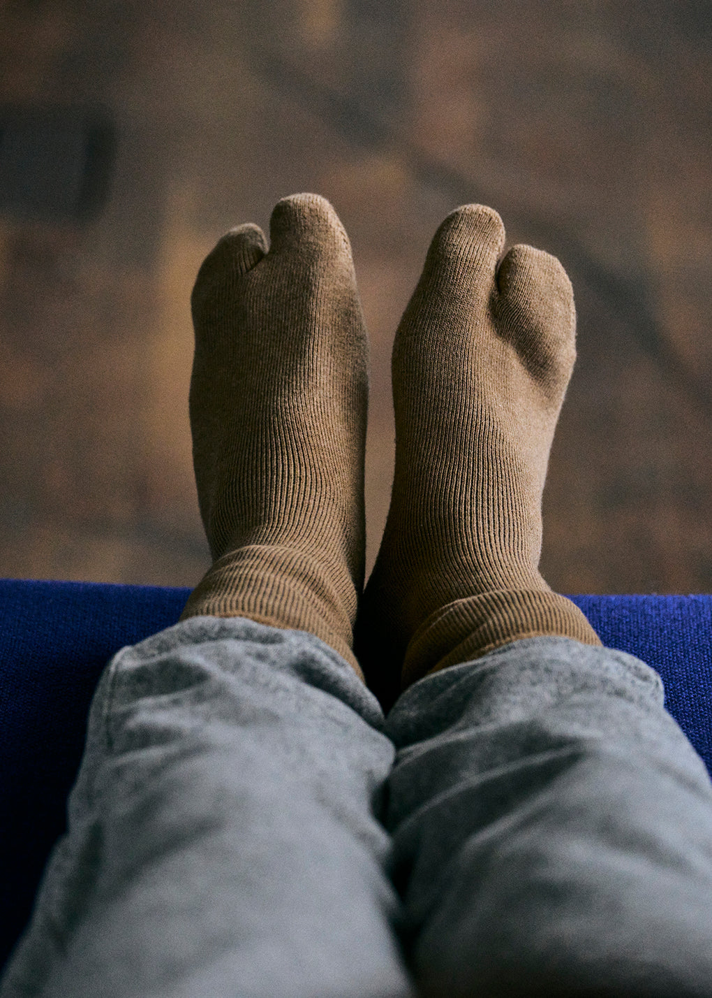 Organic Cotton Blended Yak Pile Tabi Socks|7-5005 | Brown
